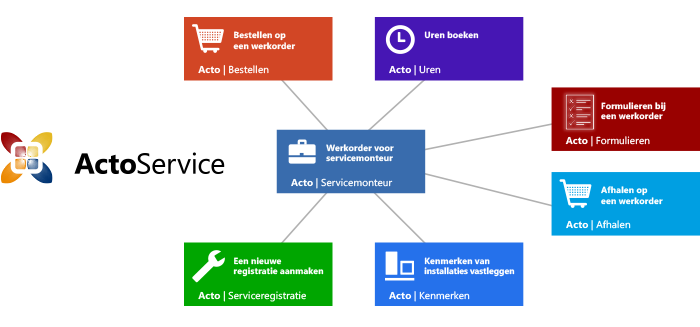 Ontwikkelen en doorontwikkelen; dat is waar we bij Acto voor staan. Voor uw servicemedewekers hebben we daarom nog veel meer innovatieve apps ontworpen. Zo bieden we hen een uitgebreide set aan kleinere apps, die, in combinatie met de Servicemonteur App, de storingen nog adequater helpt af te handelen. Zo hebben we bijvoorbeeld een app voor het plaatsen van een bestelling voor (klein)materiaal. Deze bestelde materialen kan uw monteur vervolgens direct bij de groothandel afhalen. Het grote voordeel is dat deze bestelling ook in het ERP-systeem wordt geregistreerd en, doordat de bestelling via de Servicemonteur App verloopt, ook direct op de juiste werkbon wordt geboekt. De inkomende factuur is daarmee ook snel (automatisch) verwerkt. Maar ook voor het vastleggen of aanpassen van diverse kenmerken en meetwaardes op de assetinformatie hebben we een app.