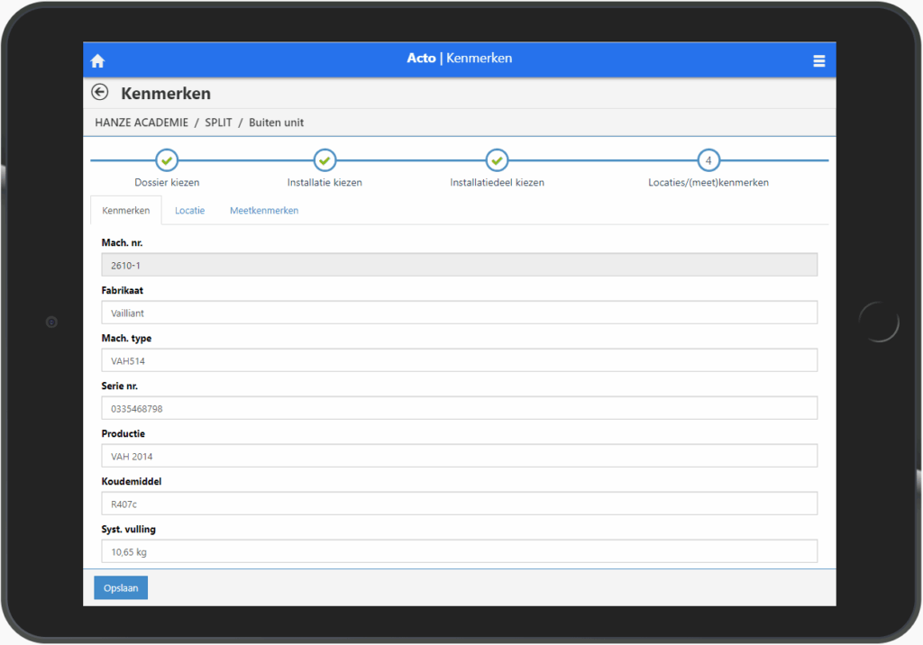 Als installateur wil je precies weten welke installaties er bij je klanten staan. Dat is van belang voor het maken van onderhoudscontracten, of het uitvoeren van inspecties of regulier onderhoud. Met de Kenmerken en Meetwaarden App kan de monteur heel eenvoudig alle relevante eigenschappen en meetgegevens vastleggen. Denk aan drukwaarden, temperaturen, serienummers of keuringsdata. De informatie is direct beschikbaar in de back-office. De app maakt het beheren én bijhouden van deze gegevens overzichtelijk en up-to-date.
