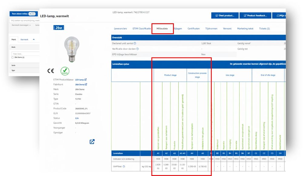 Door de koppeling met 2BA integreer je alle beschikbare LCA-data direct in je calculatie. Dankzij deze koppeling werk je volledig volgens de geldende afspraken in de bouw- en installatiebranche: digitaal, gestructureerd en klaar om data eenvoudig te ontsluiten voor rapportages en aanbestedingen.